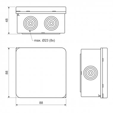 Коробка распределительная для О/П HF IP65 003.CS.K (KB) 88х88х48мм RAL7035