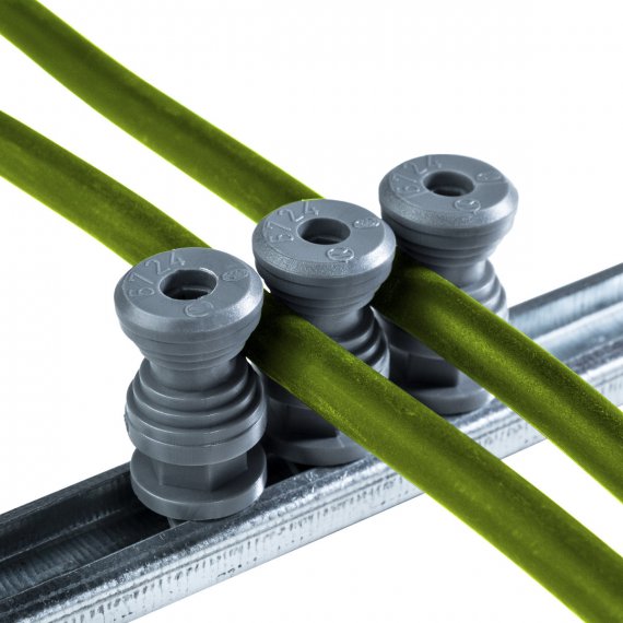 Фиксаторы предназначены для фиксации тросов или других линий диаметром 7-13 мм. Сборка осуществляется путем скольжения в несущую планку типа 5820 и поворота ее на 90°.