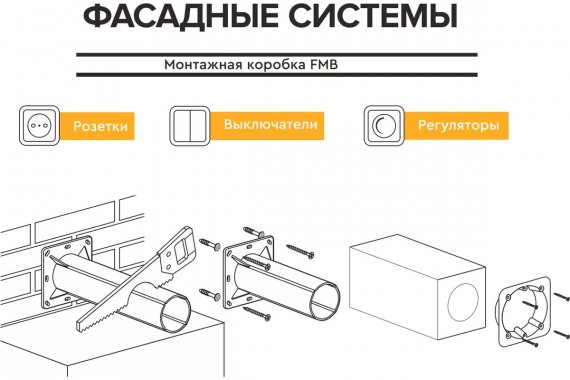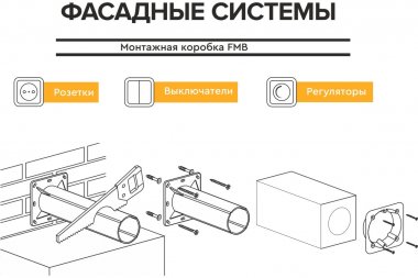 Фасадная монтажная коробка FMB 320 предназначена для размещения электроустановочных изделий (Розетки, выключатели, димеры, регуляторы, электроустановочные приборы до 400 В и т.д.) на утепленные и вентилируемые фасады зданий с толщиной изоляции от 50 до 320 мм.
