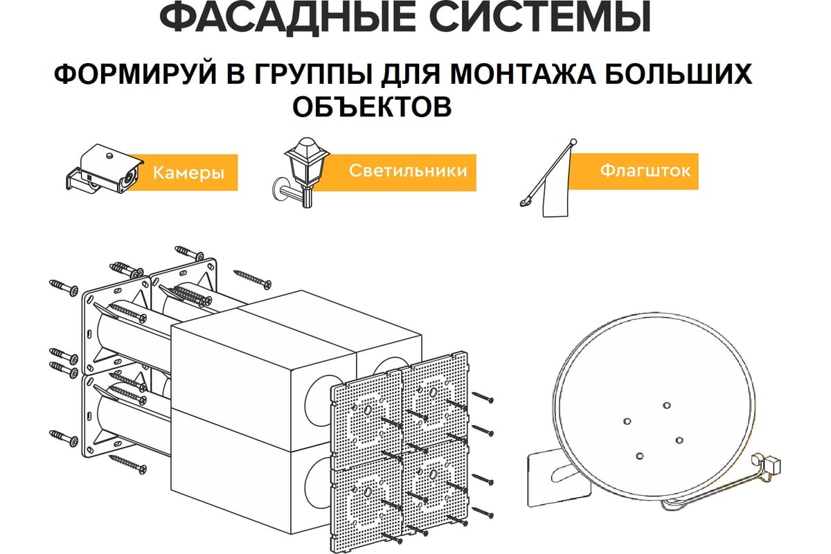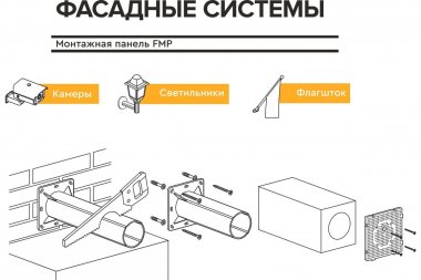 Фасадная монтажная панель FMP 320 предназначена для установки электрооборудования (уличные настенные светильники, датчики движения, камеры видеонаблюдения, электроустановочные приборы до 400 В и т.д.) на утепленные фасады зданий с толщиной изоляции от 50 до 320 мм.