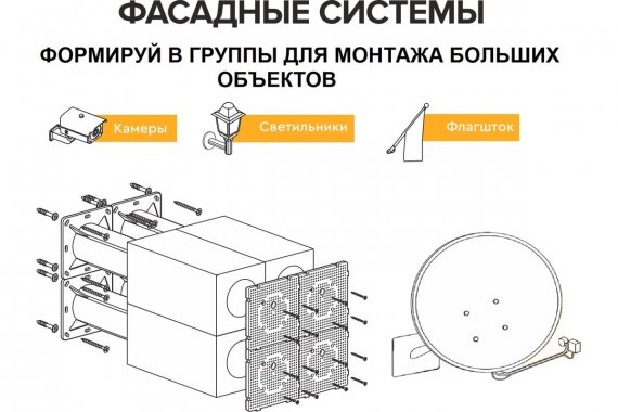 Конструкция изделий предоставляет возможность создания монтажной площади любого размера при использовании нескольких монтажных панелей и организации блочной конструкции при этом жесткость и нагрузка увеличивается и позволяет монтировать не большие блоки кондиционеров и другие тяжелые конструкции, за счет распределения нагрузки на точки крепления блоков из фасадных панелей.