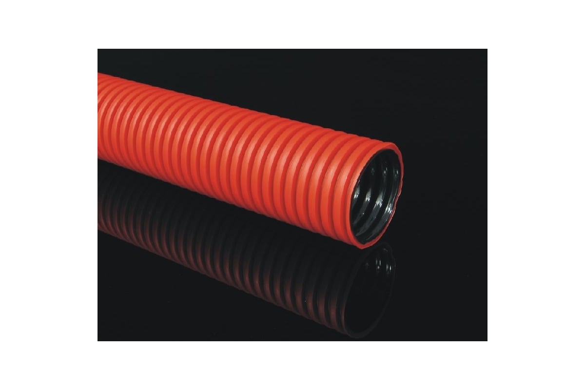 Безгалогенная двустенная гофрированная труба предназначена для механической защиты всех типов энергетических и коммуникационных сетей. Изготовлены согласно CSN EN 61386-24. Поставляются в виде отрезков длиной 6 метров. В комплекте с соединительной муфтой. Использование соединительных муфт защищает от попадания пыли и песка. Степень защиты: IP 40, в случае использования уплотнительных колец IP 67.