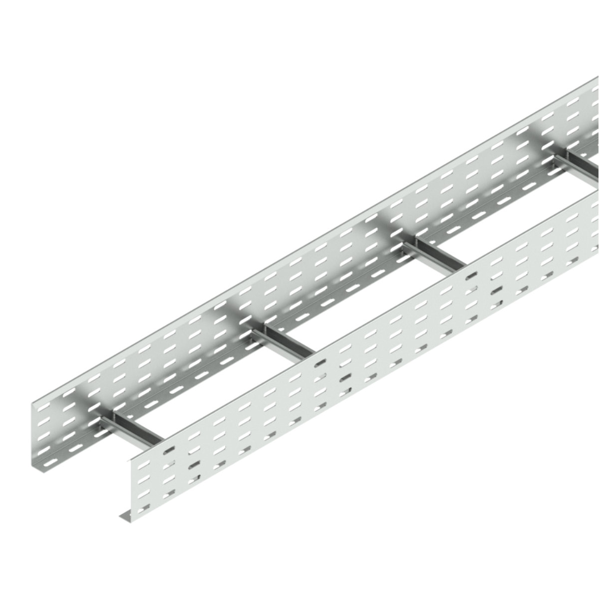 Лестничный лоток – это кабельный лоток, который состоит из двух продольных направляющих профилей (лонжеронов), соединенных между собой поперечными перекладинами, и используется в качестве опоры для кабелей и проводов при выполнении трасс с открытой электропроводкой и открытой прокладки кабельных линий. За счет высокой несущей способности и жесткой конструкции на лестничных лотках можно прокладывать тяжелые кабельные линии. Оперативный доступ к кабельной линии позволяет упростить ее обслуживание и при необходимости легко развивать систему кабельных трасс, а открытая конструкция лестничного лотка дает возможность для естественной терморегуляции кабеля и создает комфортные условия для его прокладки или замены. Широкий ряд типоразмеров лотков и аксессуаров к ним позволяет разработать кабельную трассу любой сложности. Испытания лестничных лотков показали высокую огнестойкость и сохранность всех характеристик в условиях пожара.