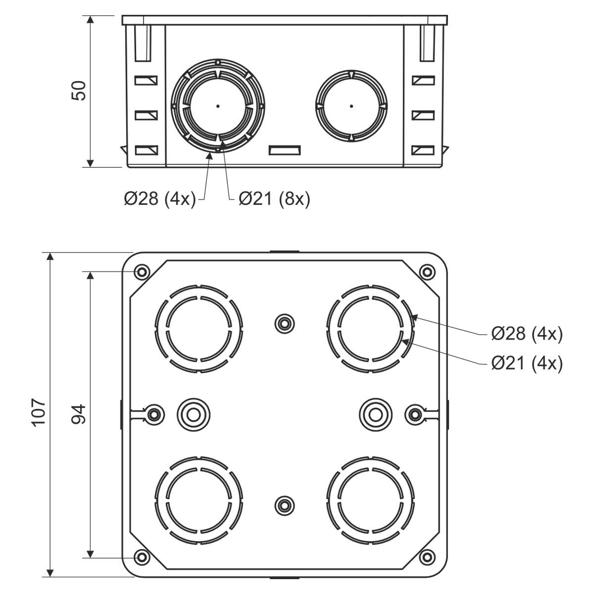 Коробка распределительная для твердых стен с/м KO 100 (KA) 107х107х50 мм