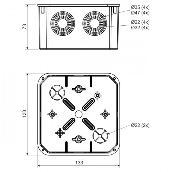 Коробка распределительная для твердых стен с/м KO 125 (KA) 133х133х73 мм