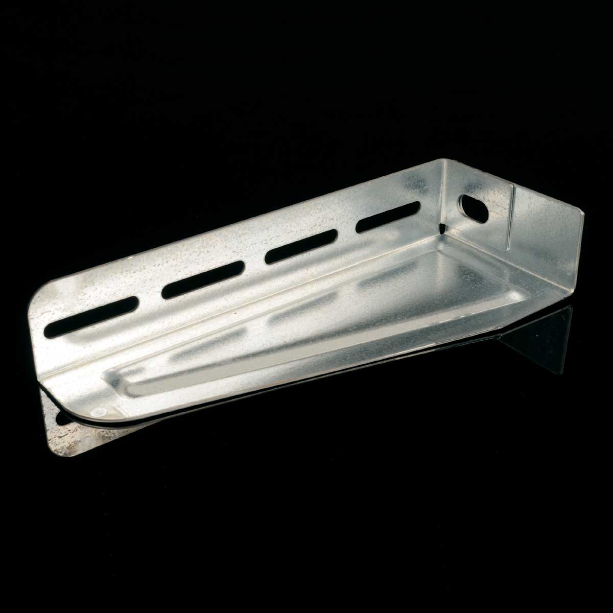 Элемент из серии системы подвесов для монтажа металлических лотков. Консоль для потолочной стойки осуществляет надежное и быстрое крепление любого типа лотка с высокой нагрузкой. На ее нижней плоскости, имеющей форму усеченной трапеции, есть два отверстия, которые позволяют на болтовых соединениях крепить консоль на потолочной стойке.