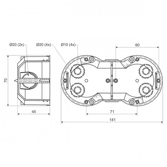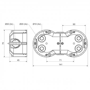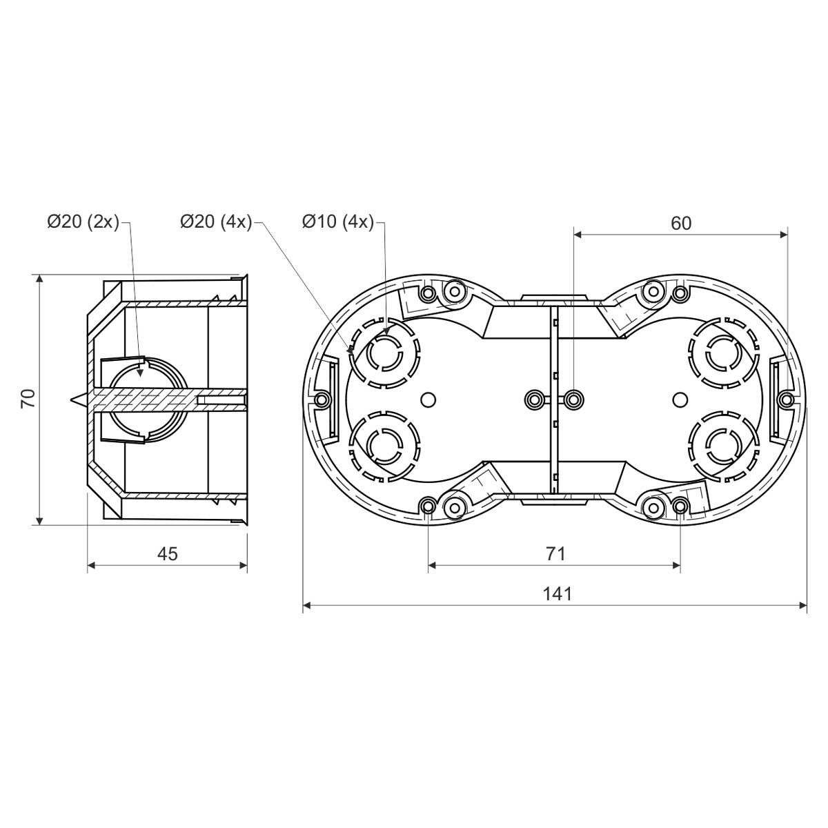 Коробка установочная двойная для твердых стен KP 64 / 2 (KA) 141х70х45 мм