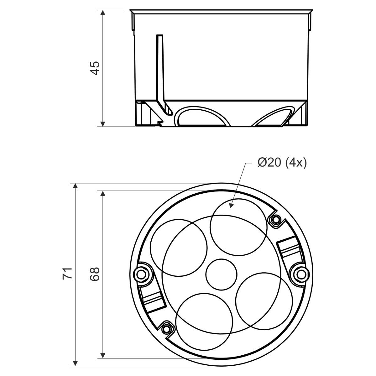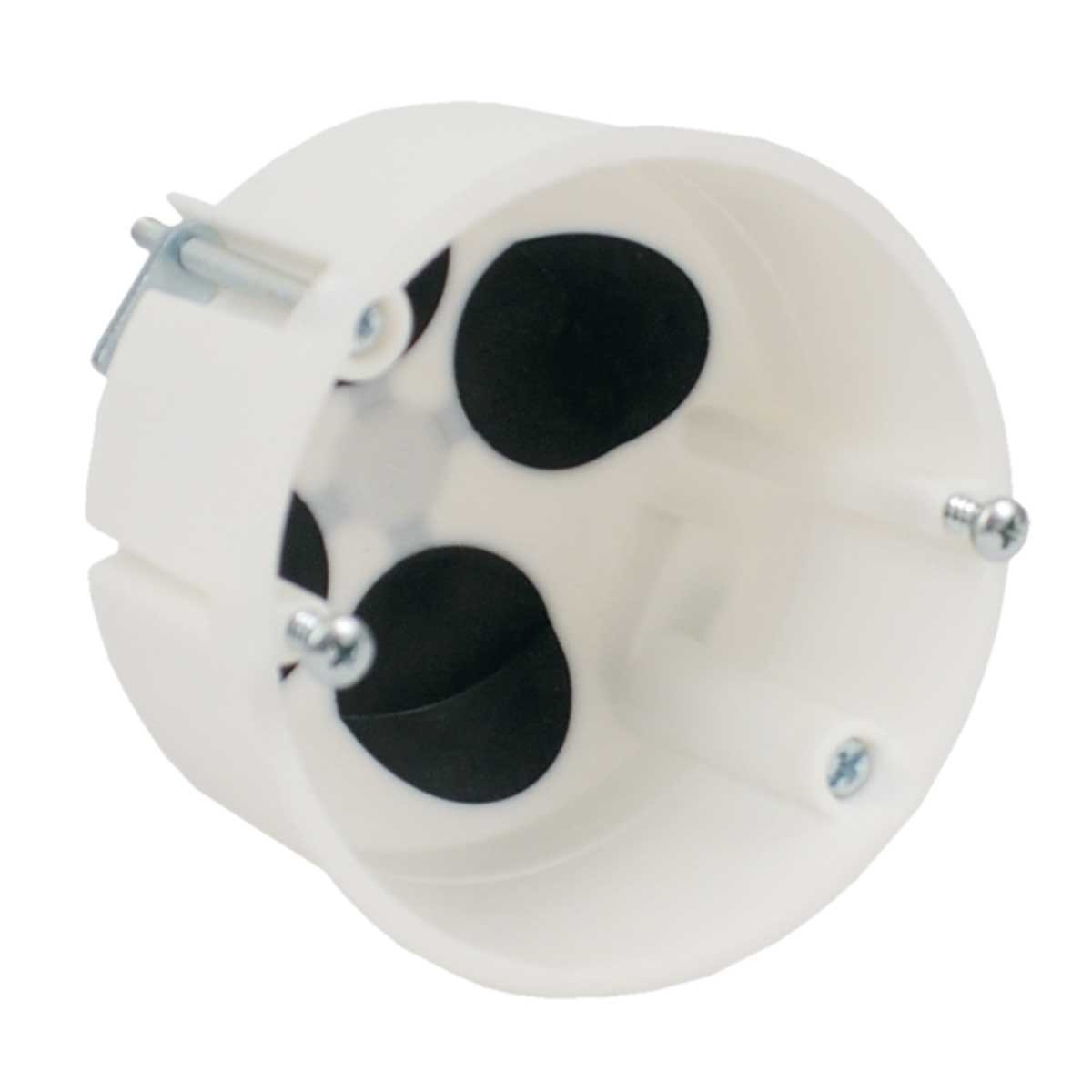 Для объектов с высоким требованием безопасности и защиты людей и имущества во время пожара. Входные отверстия изготовлены из эластичного материала. Ввод кабеля осуществляется путем прорыва мембраны острым предметом (например, отверткой), при необходимости эластичный ввод можно удалить. Обеспечивается герметичность ввода кабеля или трубы. Монтажные винты имеют трёхшаговую резьбу для быстрого монтажа. Предотвращает прохождению воздуха через проводку. При монтаже нет необходимости углублять край гипсокартона.
