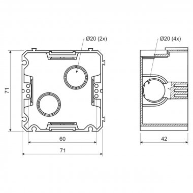 Коробка установочная для твердых стен KP 67X67 (KA) 71х71х42 мм