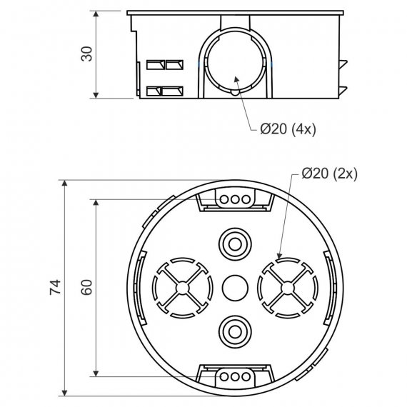 Коробка установочная для твердых стен KP 68 / 2HF (FA) D71х43 мм