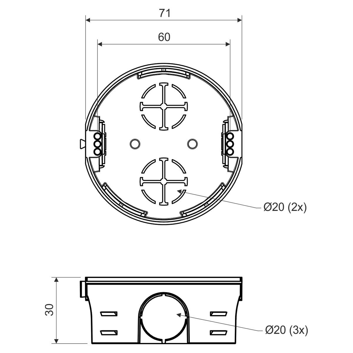 Коробка установочная для твердых стен KP 68 / 2 (KA) D71x30 мм