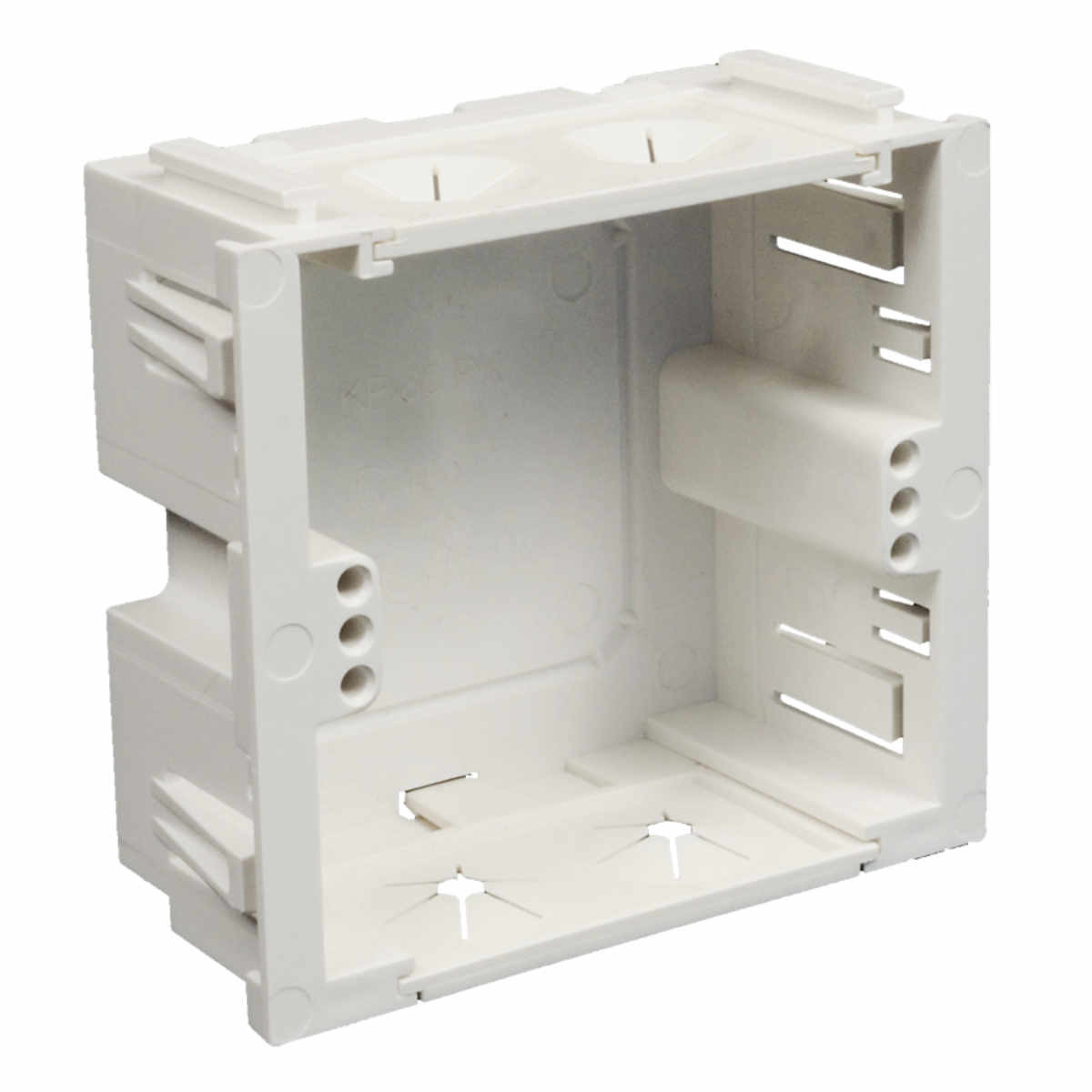 Закрытая коробка со съемными перегородками. Соединения в коробке позволяют устанавливать несколько устройств в один ряд. Подходит для установки приборов в квадратную раму. Можно установить экранирующий канал SK 40X20.