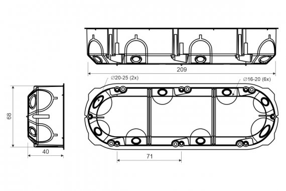 Коробка огнестойкая установочная для полых стен KPL 64-40 / 3LD (NA) 68х209х40мм