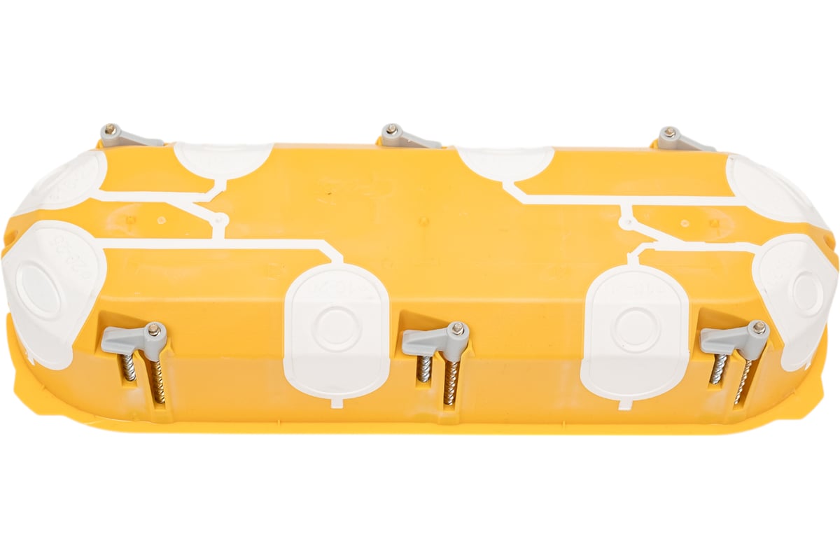 Коробка снабжена пластмассовыми крепежными лапками.