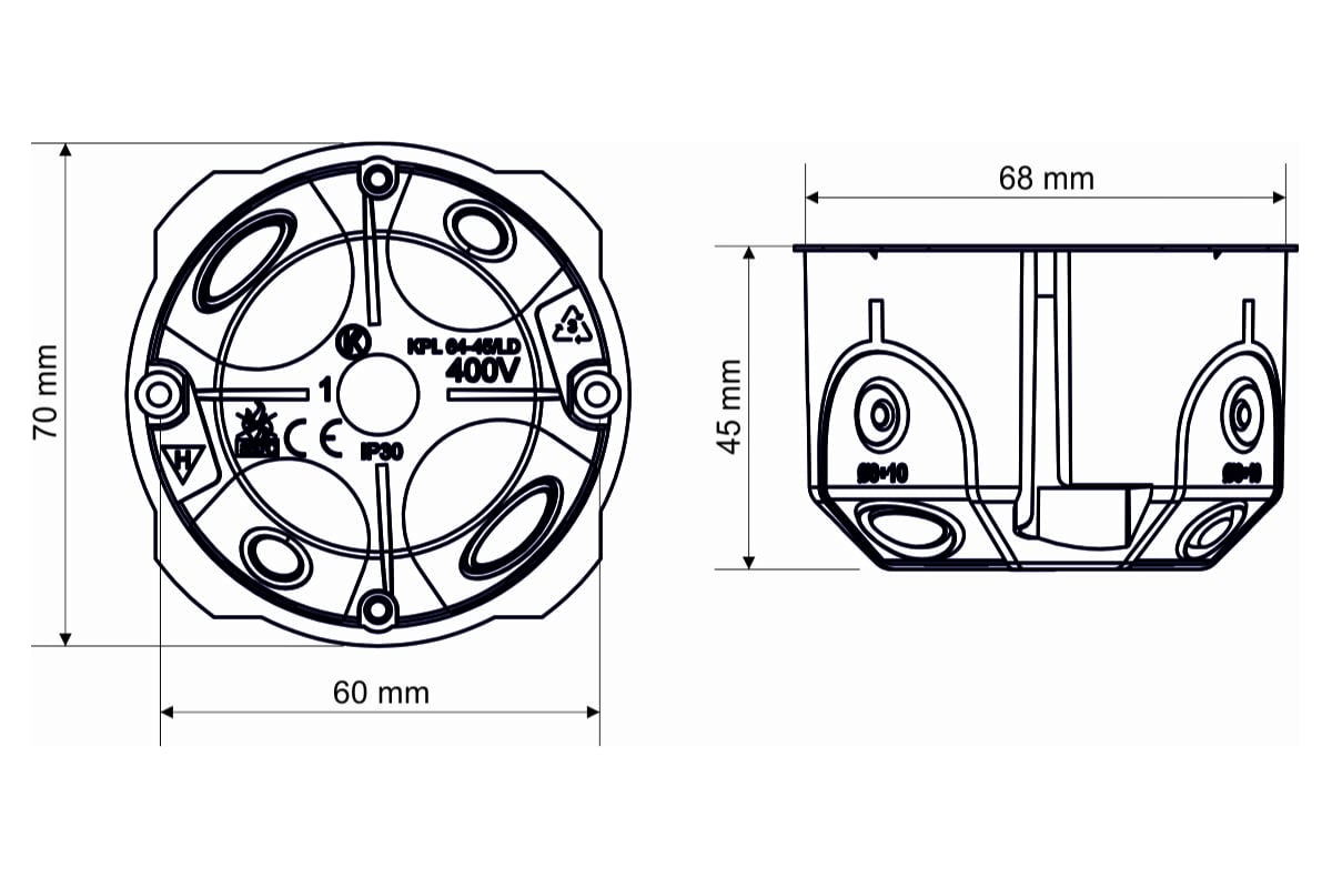 Установочная коробка огнестойкая KOPOS для полых стен D68х45мм KPL 64-45/LD_NA универсальная коробка для большинства приборов. Входные отверстия выполнены из эластичного материала. Установка приборов осуществляется путем прорыва мембраны острым предметом и последующего прокладывания кабеля. При необходимости мембрана может быть удалена.