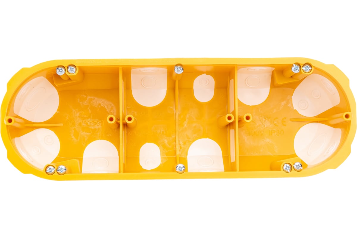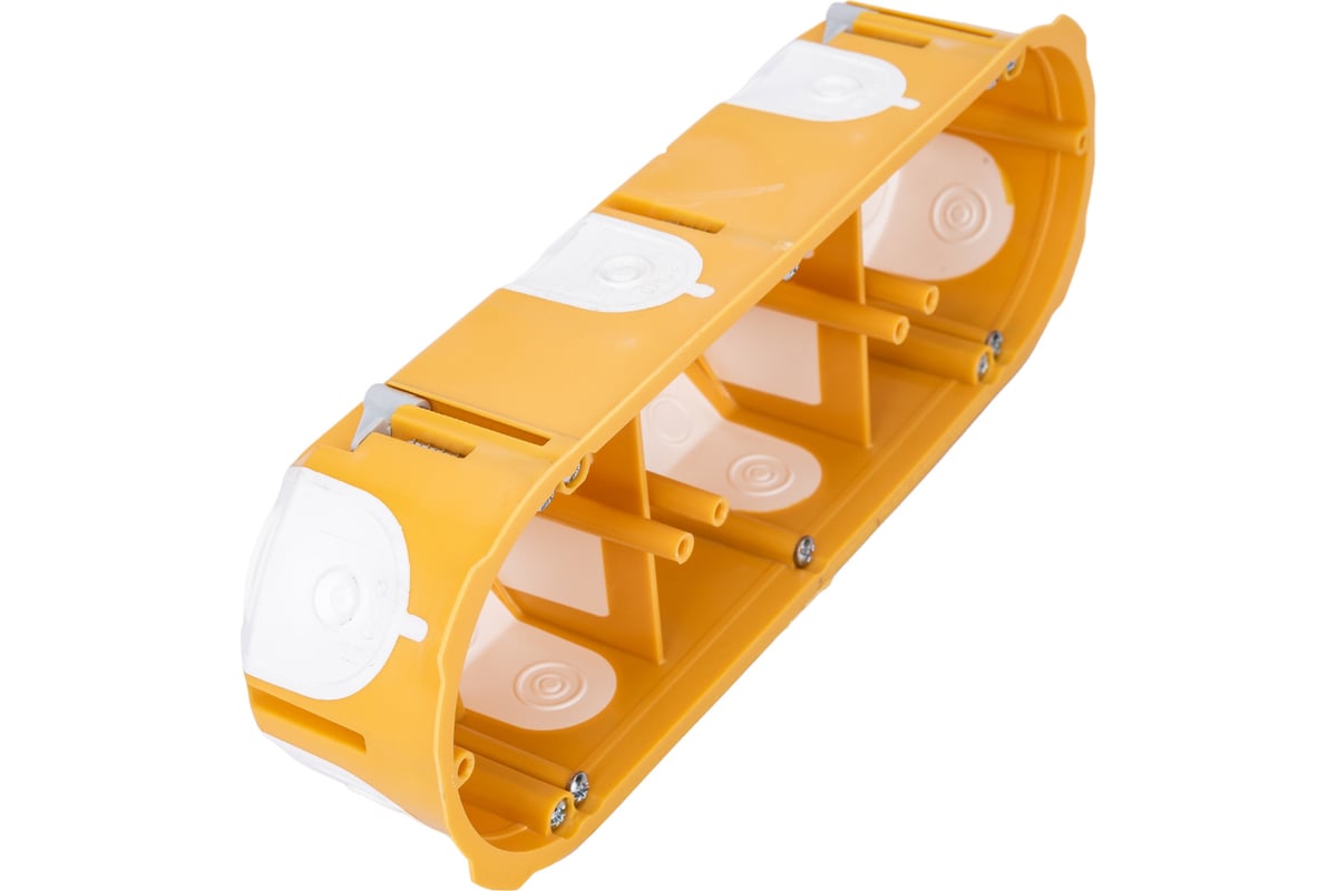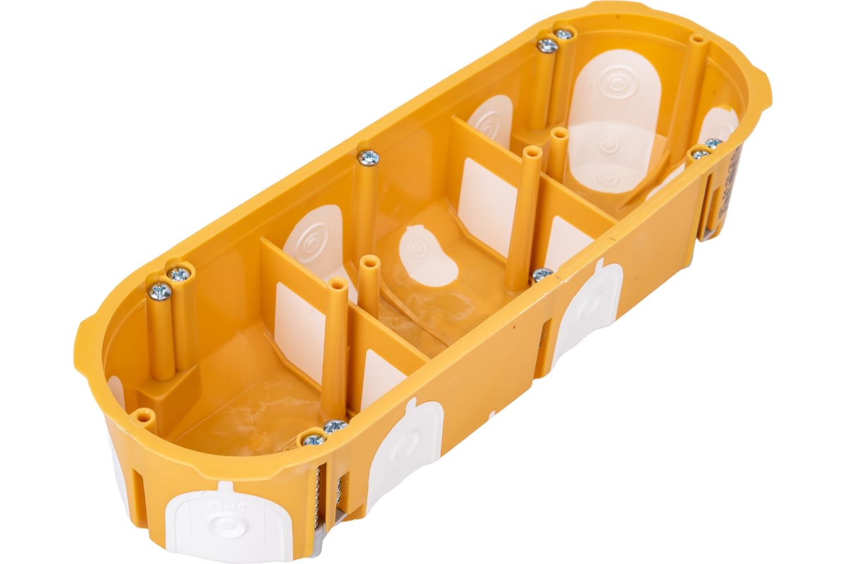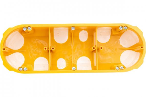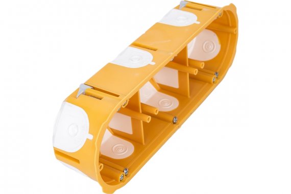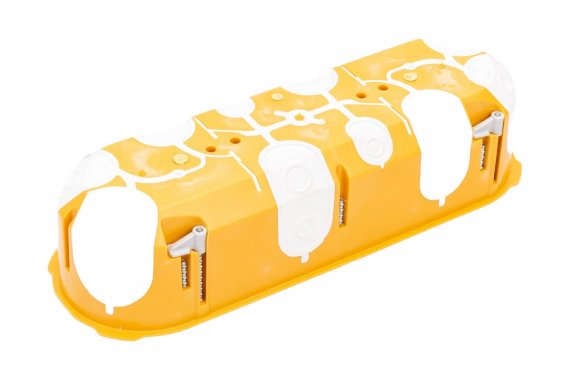 Конструкция коробки двухкомпонентного литья, не содержащая галогенов, предназначена для использования в помещениях с полыми стенками, где требуется повышенная защита людей и имущества. Ввод кабеля осуществляется путем прорыва входного отверстия на гибких мембранах и протягивания кабеля в отверстие. Коробка соответствует требованиям для установки в звуконепроницаемых стенах с уровнем шума до 69 дБ.