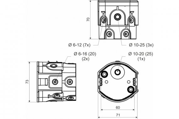 Коробка установочная для твердых стен герметичная KPR 68 D (KA) D71х66 мм