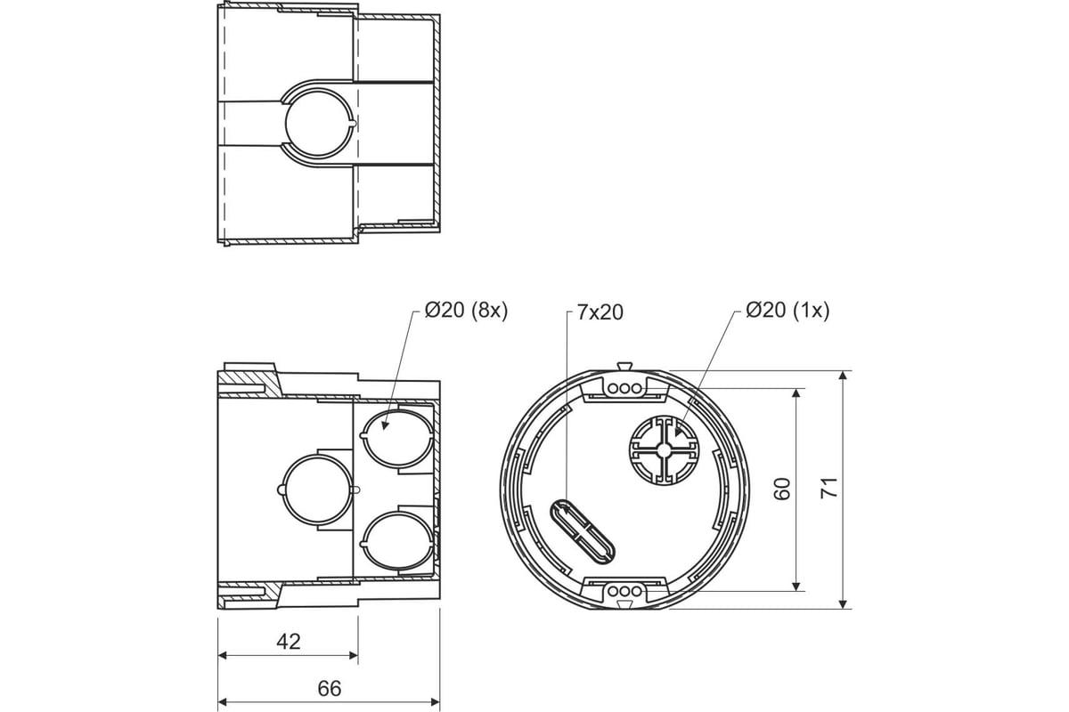 Коробка установочная для твердых стен KPR 68 (KA) D71х66 мм