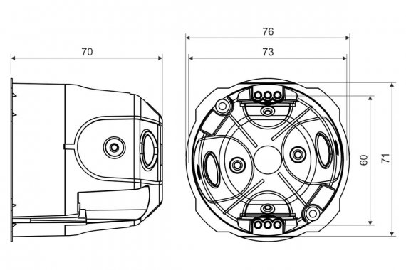 Защита IP30 - коробка с соответствующей крышкой или устройство с более высокой или равной IP30 защитой. Бокс с осевым шагом 71 мм может быть выполнен с муфтой SKLD 2 (не входит в комплект поставки), при соединении необходимо оторвать предварительно маркированную часть обода бокса.
