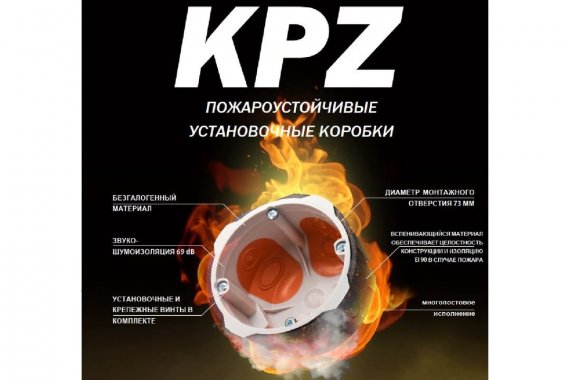 Вводные отверстия выполнены из эластичного материала и обеспечивают герметичность прохода между коробкой и установленным в ней кабелем или трубой. На наружную и внутреннюю стороны коробки наносится пенообразующий материал, который в случае пожара вспенивает монтажное отверстие. Это обеспечивает целостность и изоляцию противопожарных перегородок в месте расположения устройств. Его использование таким образом предотвращает распространение огня в случае возникновения пожара. Трехшаговые резьбовые крепежные винты снабжены металлическими фиксаторами для быстрой установки.в случае пожара обеспечивают целостность перегородки и, таким образом, предотвращает распространение огня на срок до 90 минут (EI 15 - EI 90)