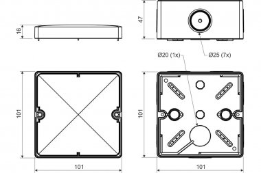 Ультрафиолетостойкая коробка KOPOS для О/П Черная IP66 KSK 100_FA используется в среде, в которой требуется защита IP66. Прибор отлично подходит для уплотнения кабелей. Изделие оборудовано нержавеющими винами для установки крышки и заглушки.