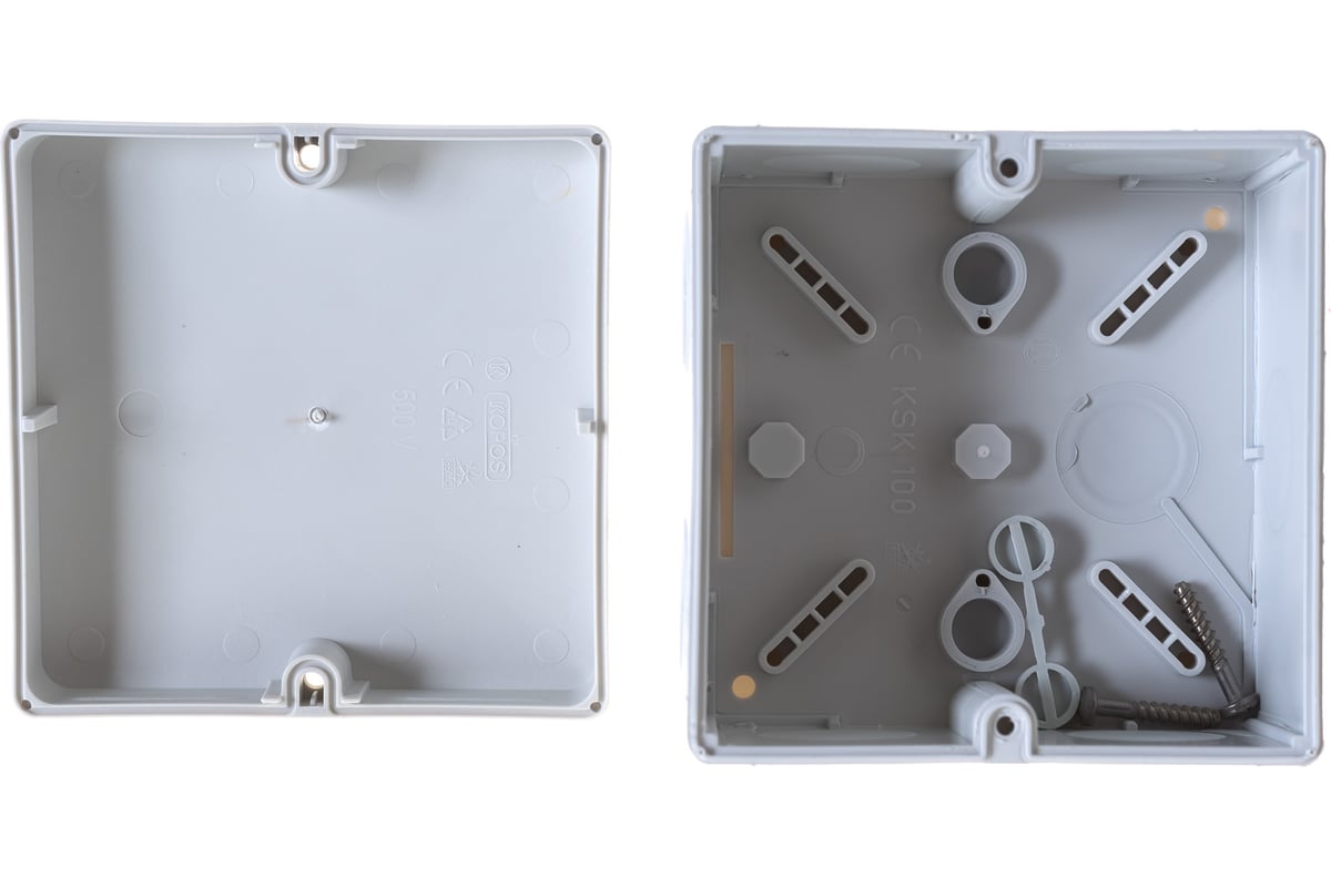 Коробка KOPOS для О/П серая IP66 KSK 100_KA для установки в среде, в которой требуется защита IP 66. Встроенное уплотнение в отверстиях для монтажа на основу. Предназначено для установки на основу без необходимости применения теплоизолирующей подкладки. Идеальное уплотнение кабелей. Нержавеющие винты для установки крышки и заглушки для головок монтажных винтов в комплекте. Возможность установки специальной рядной клеммной коробки (S-KSK 1). Интегрированное уплотнительное кольцо для установки кабельного зажима. Модификация данной коробки поставляется также в противопожарном испольнении - см. каталог «Системы с сохранением функциональности во время пожара». Oтверстие: 7x D=25 мм и 1x D=20 мм.