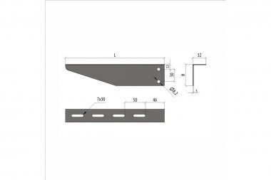Элемент из серии системы подвесов для монтажа металлических лотков. Консоль для потолочной стойки осуществляет надежное и быстрое крепление любого типа лотка с высокой нагрузкой. На ее нижней плоскости, имеющей форму усеченной трапеции, есть два отверстия, которые позволяют на болтовых соединениях крепить консоль на потолочной стойке.