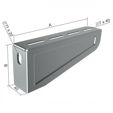 Элемент из серии системы подвесов для монтажа металлических лотков. Консоль для потолочной стойки осуществляет надежное и быстрое крепление любого типа лотка с высокой нагрузкой. На ее нижней плоскости, имеющей форму усеченной трапеции, есть два отверстия, которые позволяют на болтовых соединениях крепить консоль на потолочной стойке.
