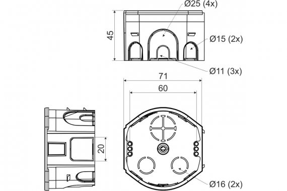 Для монтажа необходимо использовать сверлильную коронку диаметра 80мм. Возможность неограниченного многопостового соединения между собой с межосевым расстоянием 71 мм. Трехточечная фиксация ЭУИ, для лучшего нивелирования отдельной монтажной точки.
