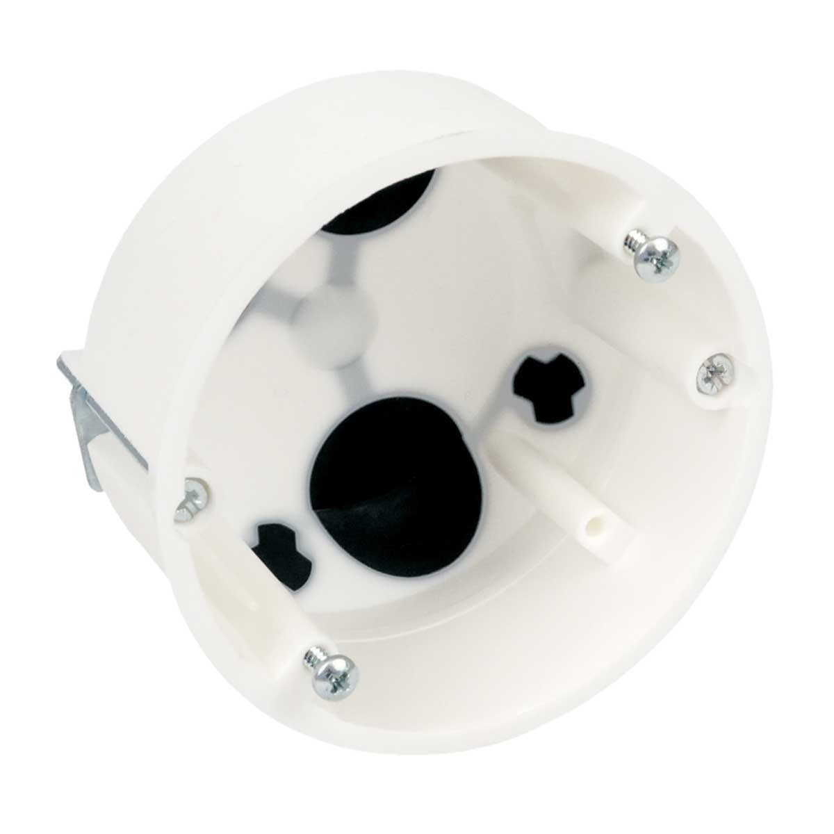 Для объектов с высоким требованием безопасности и защиты людей и имущества во время пожара. Входные отверстия изготовлены из эластичного материала. Ввод кабеля осуществляется путем прорыва мембраны острым предметом (например, отверткой), при необходимости эластичный ввод можно удалить. Обеспечивается герметичность ввода кабеля или трубы. Монтажные винты имеют трёхшаговую резьбу для быстрого монтажа. Предотвращает прохождению воздуха через проводку. При монтаже нет необходимости углублять край гипсокартона.