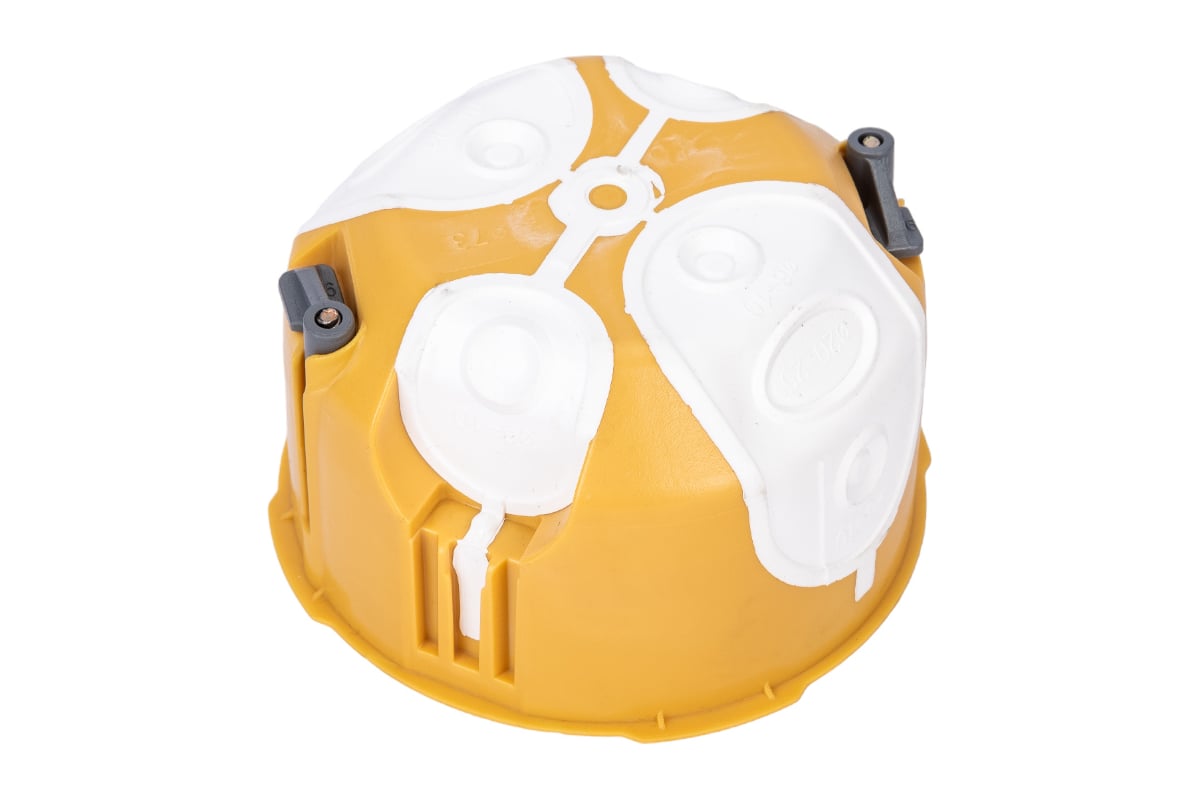 Установочная коробка огнестойкая KOPOS для полых стен D73х45мм KUL 68-45/LD_NA обеспечивает герметичность ввода кабеля или трубы. Монтаж кабеля проводится путем прорыва мембраны острым предметом с последующим введением кабеля или трубы в образовавшееся отверстие. Входные отверстия изготовлены из эластичного материала. Монтажные и приборные винты имеют трехшаговую резьбу для быстрой установки, коробка снабжена пластмассовыми крепежными лапками. Предотвращает прохождению воздуха через проводку. При монтаже нет необходимости углублять край гипсокартона.