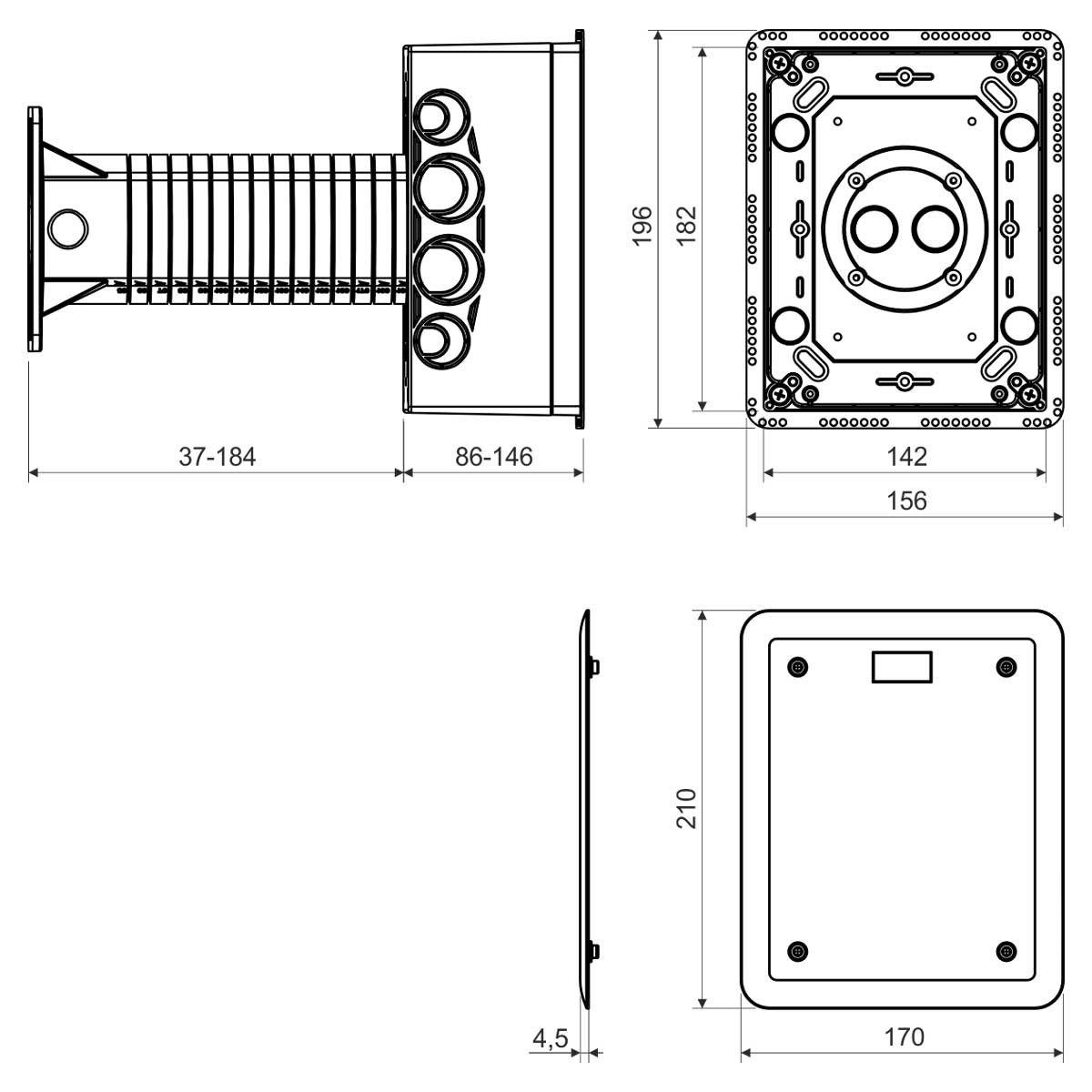 Для установки приборов в утепленных фасадах зданий с толщиной изоляции 120 - 330 мм. Применяется как распределительная коробка, коробка для клеммы громоотвода и др. Исключает возникновение тепловых мостов. Регулируемая глубина коробки. В комплект входит коробка, тубус, внешняя и внутренняя изоляция, крепежный материал, крышка и саморезы из нержавеющей стали. Прочная конструкция. Защищено европейским промышленным патентом.