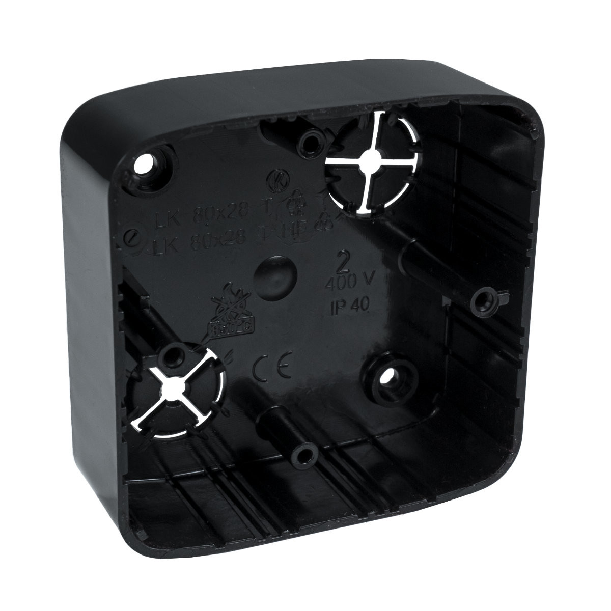 Распределительная коробка черного цвета KOPOS для открытой проводки 82х82х25 мм предназначена для приборов серии с большой монтажной глубиной за исключением небольшой двойной розетки. Для установки на материалы класса реакции на огонь E или F используйте теплоизолирующую подкладку. Используются для распределения кабельных систем при монтаже кабельных каналов.