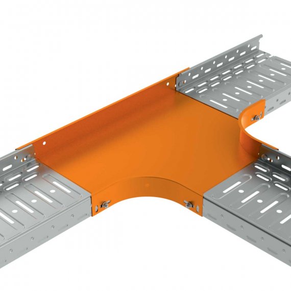 Отвод Т-образный предназначен для организации Т- или Х-образного горизонтального отвода кабельной трассы. Также аксессуар применяется для Т-ответвления вниз в вертикальной плоскости без применения крышки. Крышка аксессуара в комплект не входит.