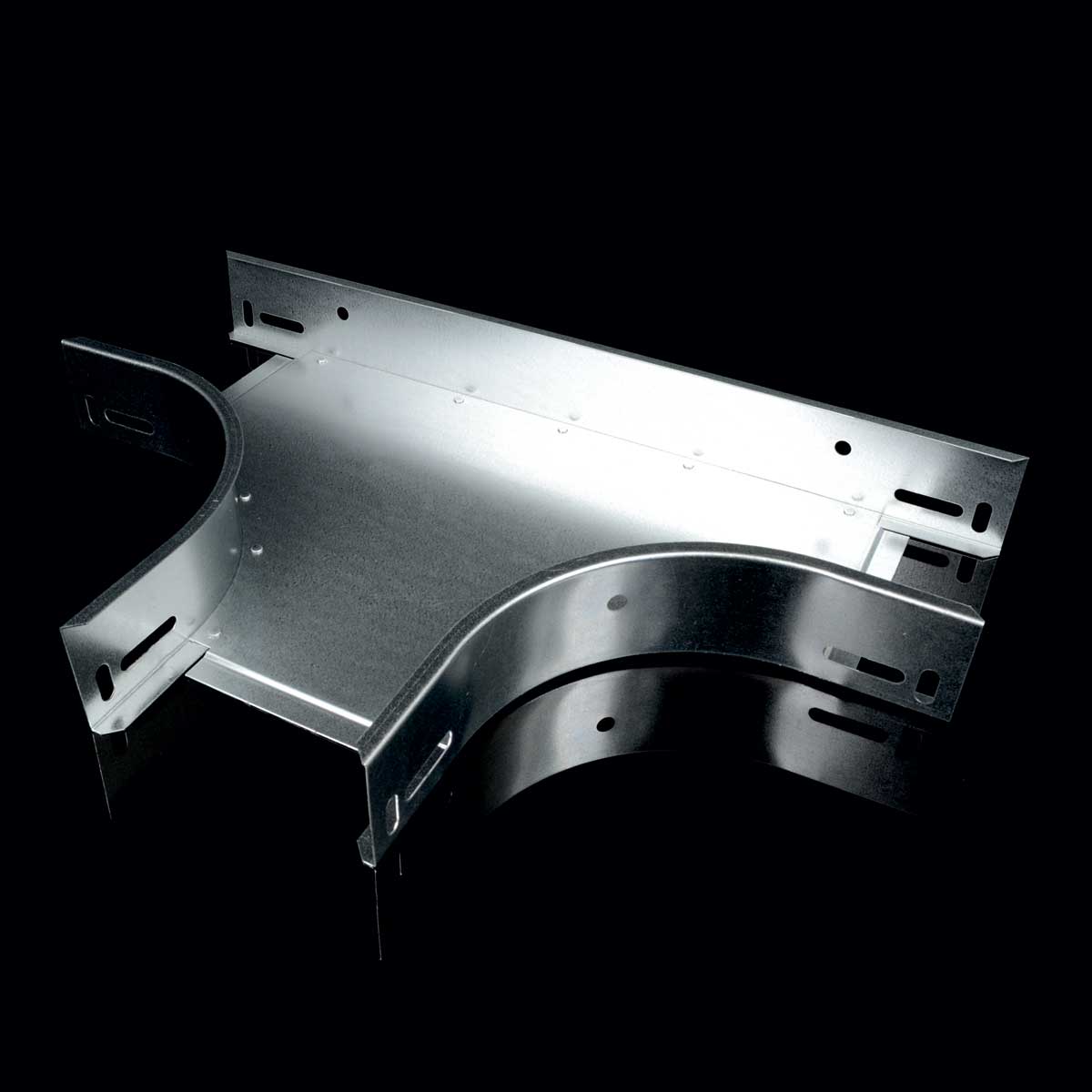Отвод Т-образный предназначен для организации Т- или Х-образного горизонтального отвода кабельной трассы. Также аксессуар применяется для Т-ответвления вниз в вертикальной плоскости без применения крышки. Крышка аксессуара в комплект не входит.