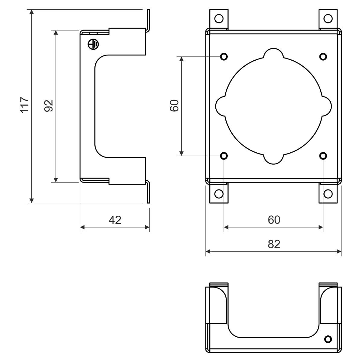 Держатель приборов для установки встроенных штепсельных розеток 400 В (16 А). Установка под монтажную панель, поставляемую для комплектов KUZ-VO и KUZ-VOI. В комплект входит саморез М4Х6 с веерной шайбой для заземления. Расстояние для установки розеток 60 мм Отделка поверхности ZnCr. Перед установкой прибороносителя необходимо выломать посадочное место на монтажной панели KUZ. Подходящие силовые приборы: SEZ IEN 1653, SEZ IEN 1643. С монтажной коробкой KUZ глубиной мин. 105 мм -MENNEKES TYPE 1385, BALS TYPE 132001, ABB 416RU6.