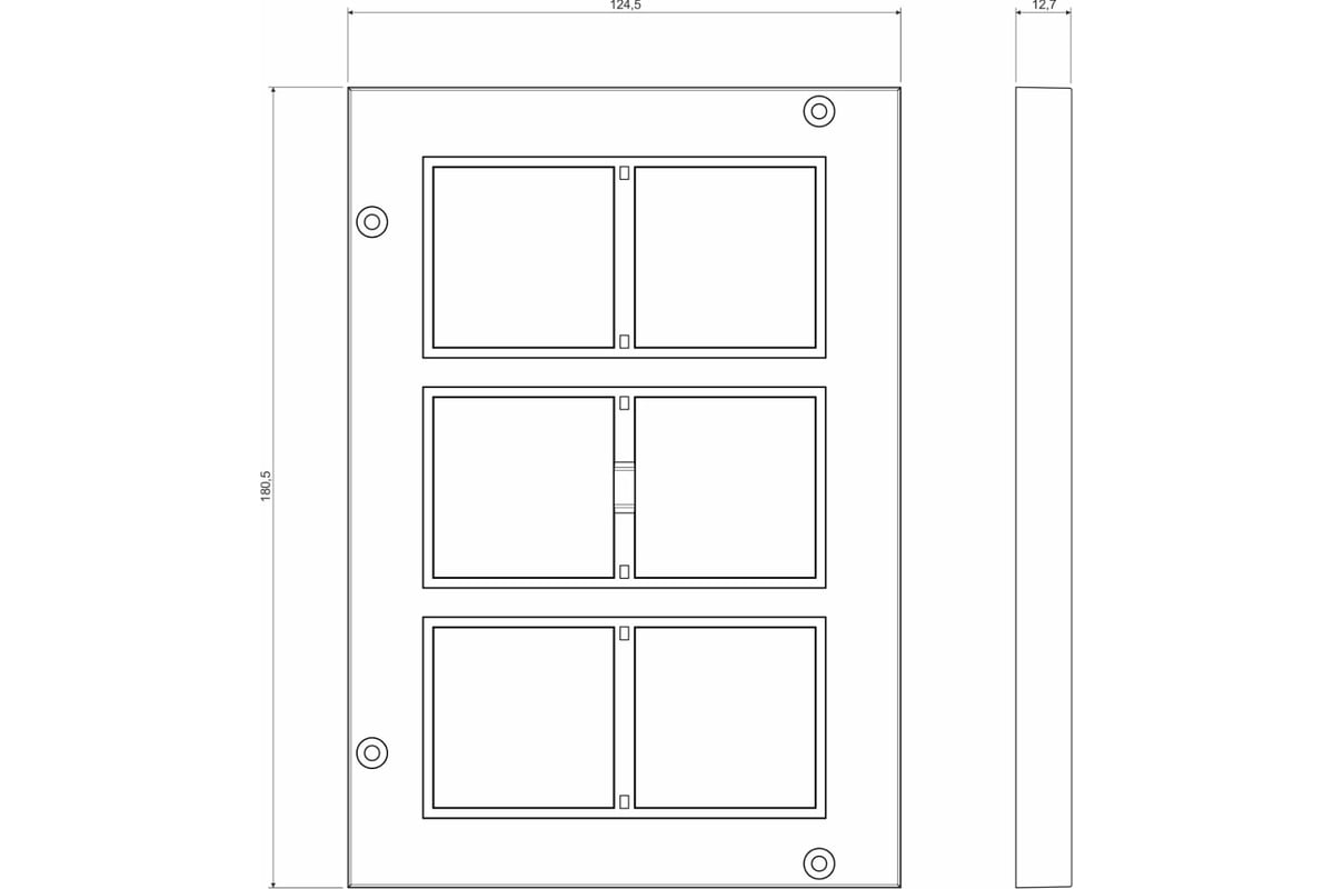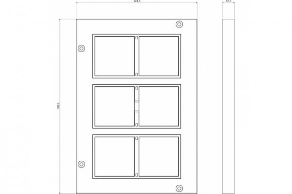 Приборная рамка KOPOS на 6 модулей 45х45 напольного лючка KOPOBOX 80 PP 80/45/6_LB устанавливается в раму коробки KOPOBOX 80 (максимально 2 шт). При установке двойных модульных устройств рекомендуется снять внутреннюю перегородку.