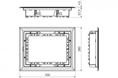 Распределительный люк-крышка KOPOS PP 80/K-5_LB предназначена для установки в универсальную напольную коробку KUP 80. Применяется в качестве глухой крышки для протяжки кабелей, не предназначена для установки приборов Дополнительная установка устройств возможна только при замене глухой рамы на напольный лючок KOPOBOX. После установки глухой рамы напольной коробки, финишное напольное покрытие максимальной высотой 8 мм укладывают на опорной плите. Отверстие, необходимое для установки в двойной пол - 218х288 мм.