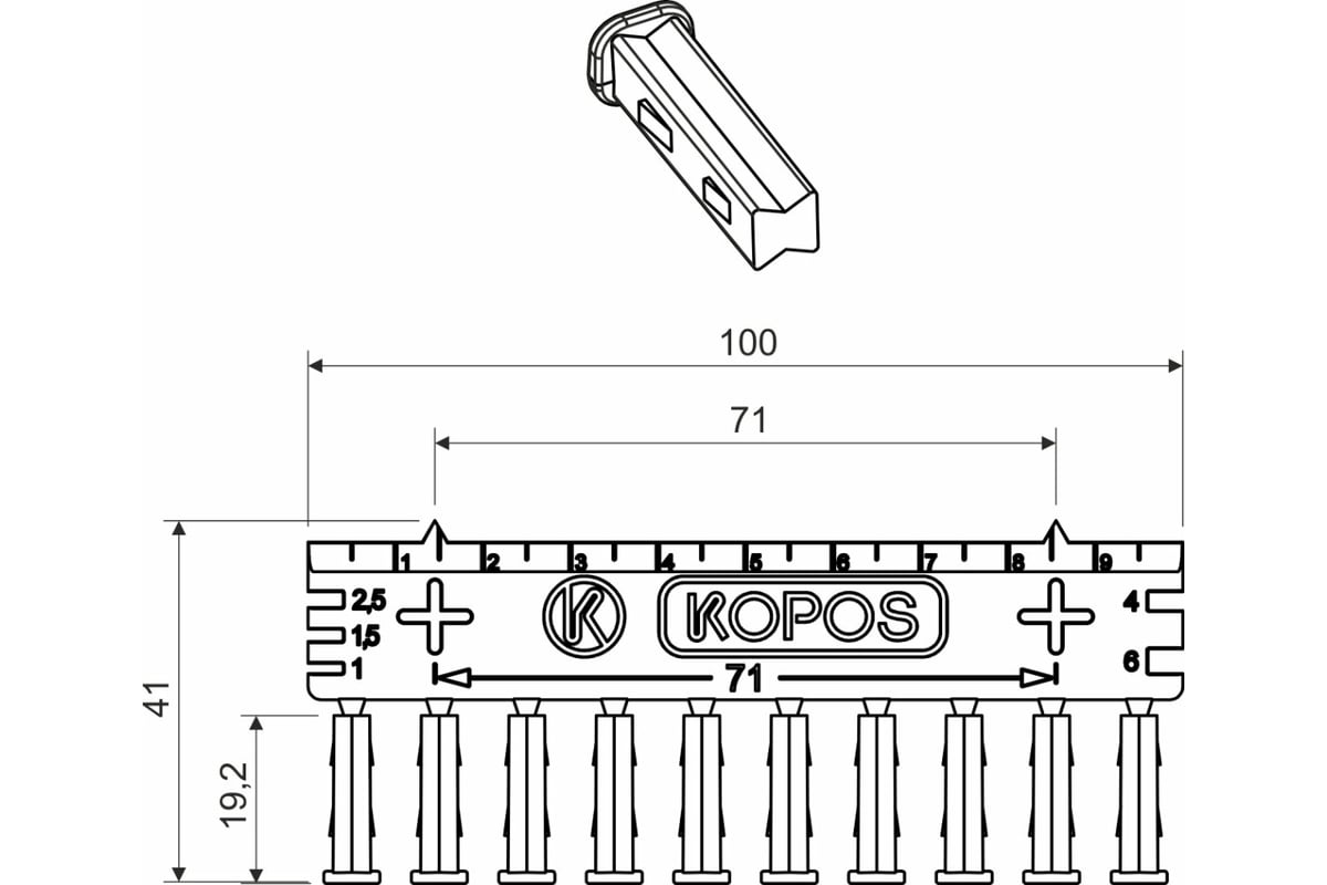 Соединительная гребенка KOPOS для коробок серий KUL и KPRL (10 шт. пластин по 10 соединителей каждая) SKLD 2_NB предназначена для соединения коробок KUL 68-45/LD, KPRL 68-70/LD. Одна гребенка для 10 соединений. С помощью изделия возможно измерить межосевое расстояние 71 мм. Пазы на торцевых сторонах позволяют определить диаметр кабеля.