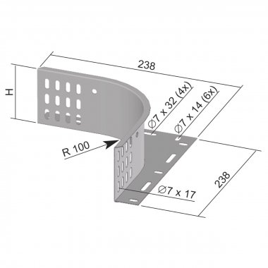 Он используется для дополнительного разветвления неравная Т-образная деталь или крест. Преимущество этого использования - доступность на выбор гибочный лоток любой ширины. Редукционная деталь поставляется одиночно, должна быть использовано 2 шт для установки. Соединение выполняют с помощью болтов НСМ 6Х10. Крышка горизонтальной ветви VOH может использоваться для покрытия маршрутов редуктором.