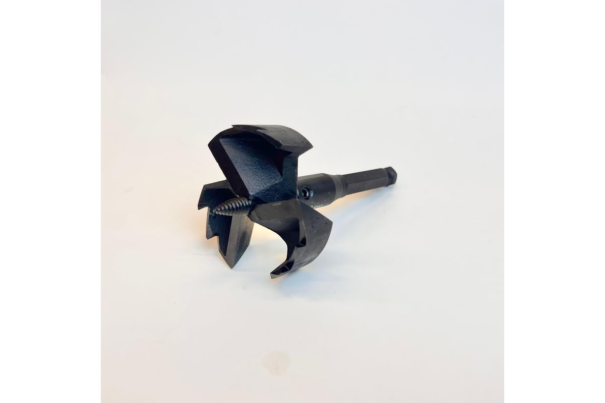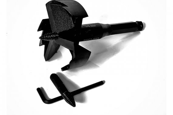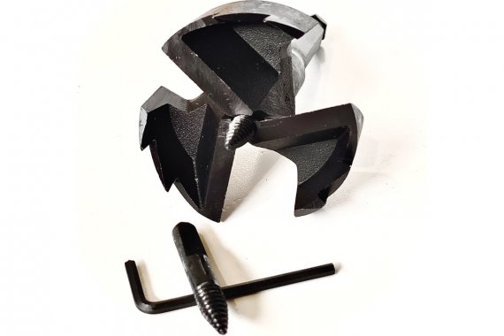 Предназначено для сверления глухих отверстий большого диаметра в древесине, особенно актуально для стен из клееного бруса и бревна. Именно поэтому форма сверла больше похожа на коронку, позволяющая существенно увеличить диаметр, в отличие от классических винтовых свёрл.