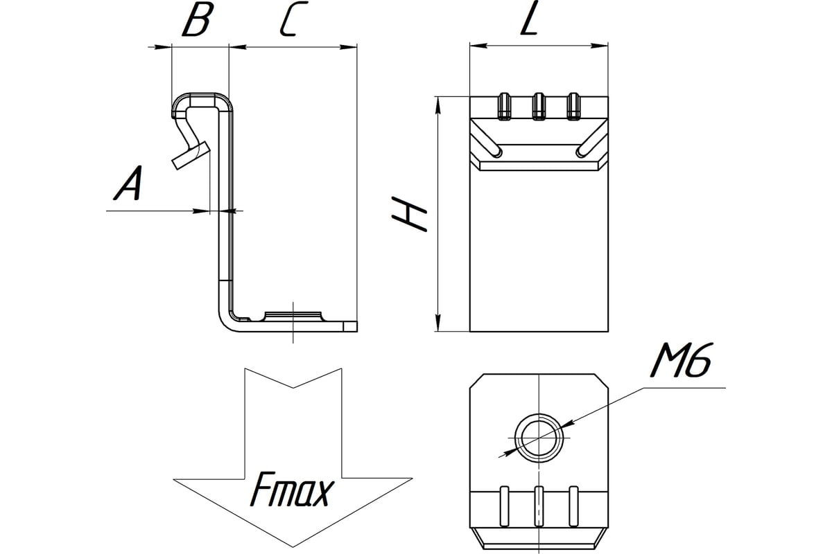 Вертикальный балочный зажим 1-5мм с отгибом и резьбой М6